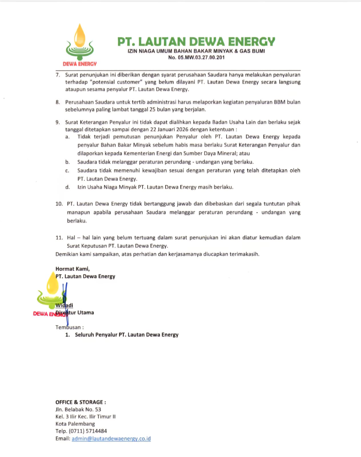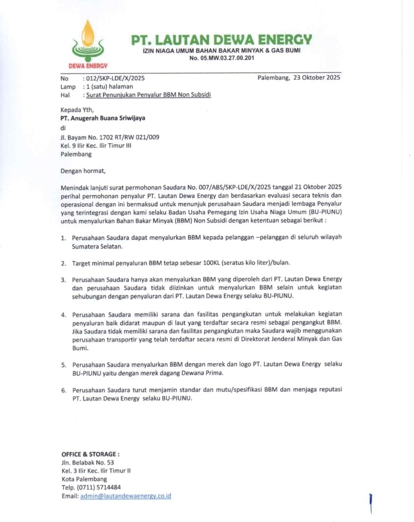 Akta NotarisNomor : 02 Tanggal 01 Juli 2022 Keputusan Menteri Hukum dan HAM (KEMENKUMHAM)Nomor : AHU-0044227.AH.01.01.Tahun 2022 Nomor Induk Berusaha (NIB) Nomor : 0407220038069 Surat Keterangan Penyalur (SKP) Nomor : 010/LDE/VII/2022 NPWP 60.089.705.2-301.000